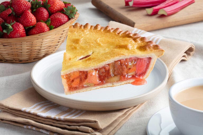 Rhubarbe, farine de blé enrichie, sucres (sucre, dextrose), shortening d’huiles de palme et de soja, fraises, eau, amidon de maïs modifiée et/ou fécule de tapioca modifiée, sel, propionate de sodium, sorbate de potassium, concentré de jus de betterave (comme colorant))